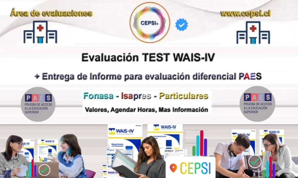 🏥 🇨🇱 Consultas Sobre el Test WAIS-IV, Mas Información Sobre el Test WAIS . Para Adultos , Adultos Mayores. Profesionales certificados. Ingresa Aquí. Haz Clic en la Imagen de Interés para consultar.Haz clic en la imagen para ingresar al área.